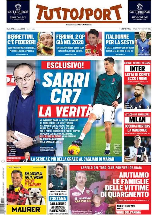 I due principali quotidiani sportivi italiani danno oggi in prima pagina due diverse letture di uno stesso testo. L’argomento è lo stesso da due giorni: l’evidente insoddisfazione di Cristiano Ronaldo al momento della sua sostituzione durante la partita di domenica sera tra la Juventus e il Milan. Ieri il centravanti portoghese ha pubblicato tramite i suoi profili social un testo ritenuto “distensivo” dalla Gazzetta dello Sport e un po’ meno dal Corriere dello Sport.